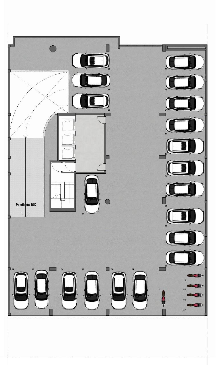 Con 15 m² de superficie, cada unidad está diseñada para facilitar las maniobras y optimizar el espacio, con circulación interna eficiente y acceso directo mediante rampa vehicular.